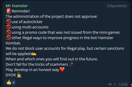 - یک اطلاعیه غیر رسمی از همستر کامبت از دیروز بین کاربران دست به دست میشود که محتوای آن درباره کسانی است که هشدار متقلب دریافت کردهاند.
